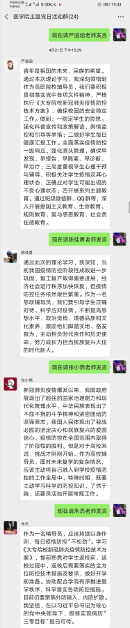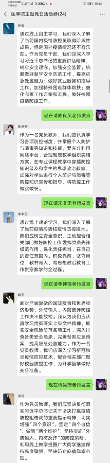 疫情防控人人有责,疫情特殊时期,医学院党支部创新学习载体,确保理论学习不离线。4月21日下午三点,我院党支部在线上组织全体党员教师开展4月主题党日活动暨理论学习会。