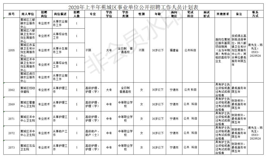 2020年4月16日:在宁德市人力资源和社会保障局网站(http://rsj.ningde.gov.cn/)发布招聘信息。
