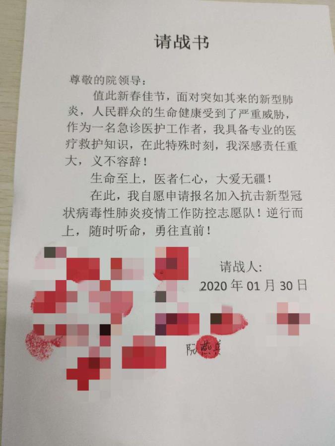 2020年初,新冠肺炎疫情席卷全国。1月28日至3月1日,他被派去急诊科发热门诊进行测量体温工作,毕业不久的他第一次直接面临着重大疫情,成为了医院一线工作者,并毅然决然签下请战书。测量体温这期间,作为年轻的工作者,每天工作12小时,戴N95口罩鼻梁被压出痕迹,病人来了主动询问有没有去外地、有没有接触过从外地回来的人,不厌其烦;当病人腋下体温超过37.3℃时带病人去感染科看病,就这样坚持了一个多月,无怨无悔。