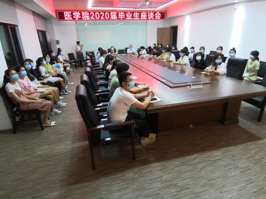 “医”直盼君归 共诉湄园情。2020年6月14日晚,行政楼303会议室气氛温馨而又热烈,医学院主任陈凤萍、党支部书记林俊、副主任陈子爱、全体辅导员及2020届毕业生代表齐聚一堂,召开2020届毕业生座谈会。会议由毕业生辅导员余丽兰主持。