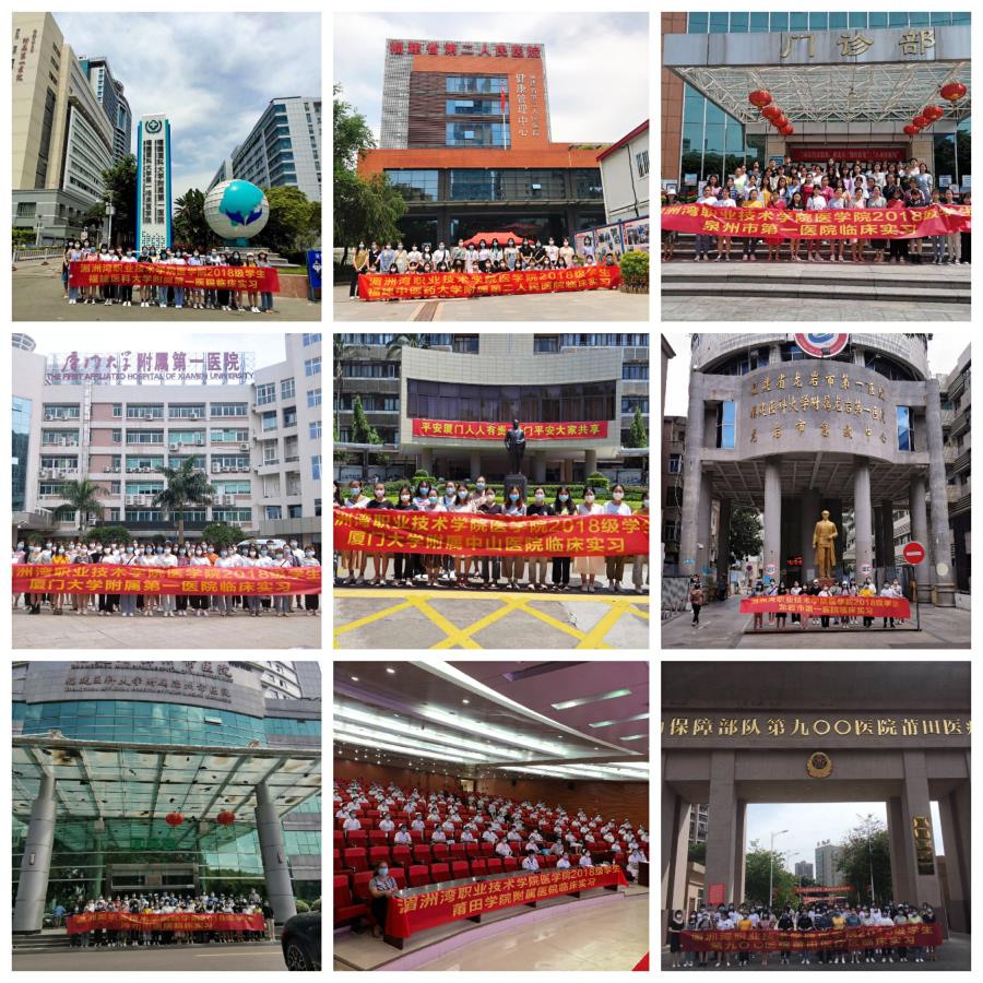 我院坚持以服务学生成长为目的,由实习指导老师带队集中送往各实习医院。此次学生实习医院遍布全省10多家三甲医院,分别是福建医科大学附属第一医院、福建中医药大学附属第二人民医院、厦门大学附属第一医院、厦门大学附属中山医院、莆田学院附属医院、联勤保障部队第九00医院莆田医疗区、漳州市医院、龙岩市第一医院、泉州市第一医院等。
