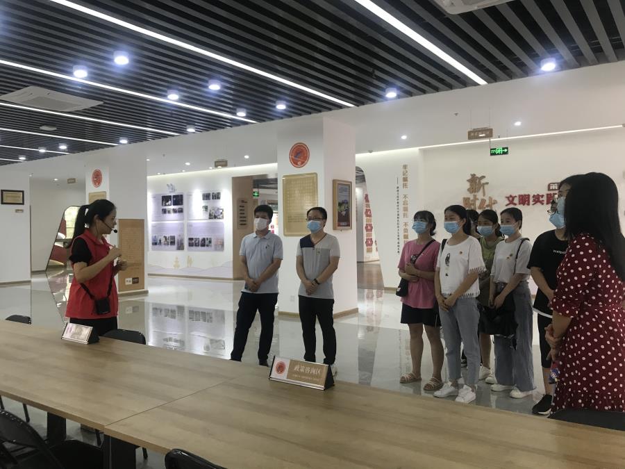 随后在中心讲解员的带领下,实践团一行就新时代文明实践中心的移风易俗馆、时代好人馆、家风家训馆、镇街特色展示区、乡风文明展示区及文明家庭风采区进行参观,详细了解学习实践中心构建的“1358”工作体系,为未来我院创新实践模式,提升育人成效提供参考和借鉴。