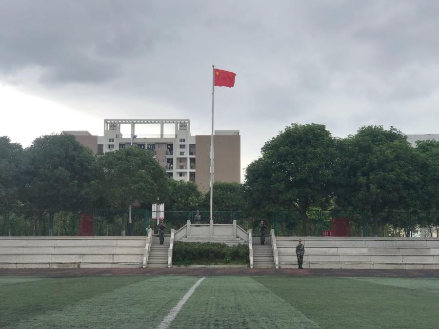 庄严的国歌响起,五星红旗迎风飘扬