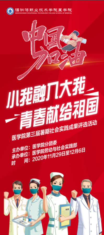 纸上得来终觉浅,绝知此事要躬行。社会实践活动是为了切实培养学生学以致用的能力和实践操作能力,提高学生的职业素养和人文关怀,培养学生为患者服务的意识。此次评选活动,让老师们不仅了解到了同学们暑期的实践情况,同时也促进了同学们间实践经验的分享与交流,有利于提升同学们社会实践能力和综合素质,促进全面发展。2020年暑期社会实践成果初赛评选活动已经结束,一起期待在下周的决赛中,同学有更加精彩的表现!~