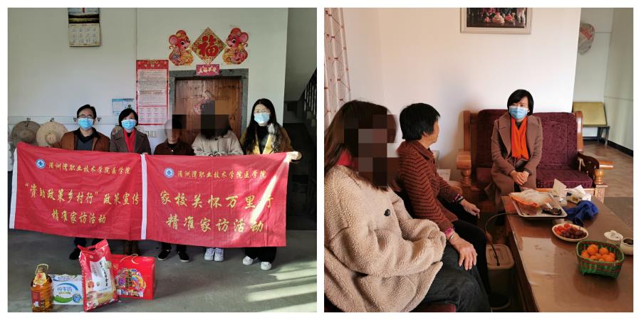 家访过程中,老师们怀揣温情与关爱,带着责任与希冀,向家长们传达党和学院的各项资助政策、介绍学院的办学情况、反馈学生在校期间的综合表现情况,认真听取家长对学校教育教学的意见和建议,耐心解答家长问题,解释学院疫情防控措施、办学理念、工作要求,详细了解学生家庭的经济来源和生活情况,鼓励他们乐观面对困难,树立生活的信心和勇气。
