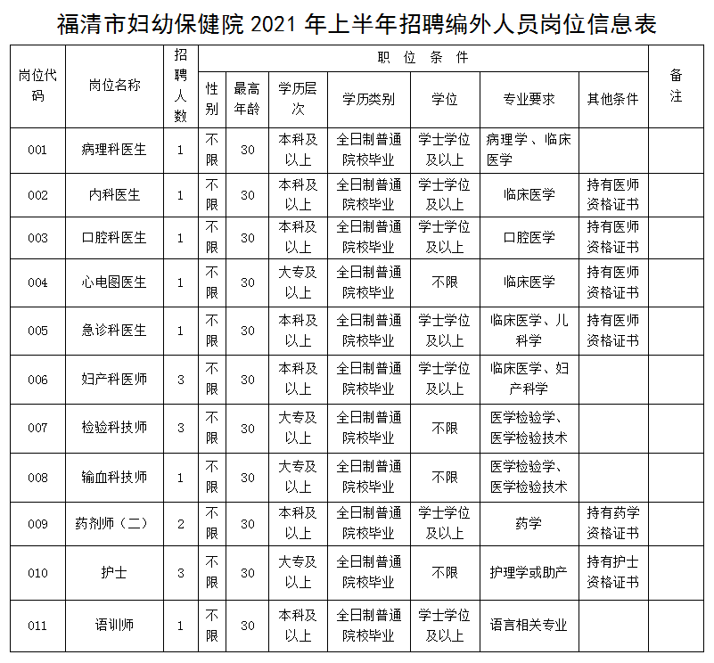 报名地点:福清市妇幼保健院1号综合楼5楼人事科