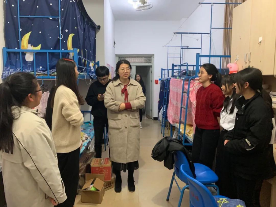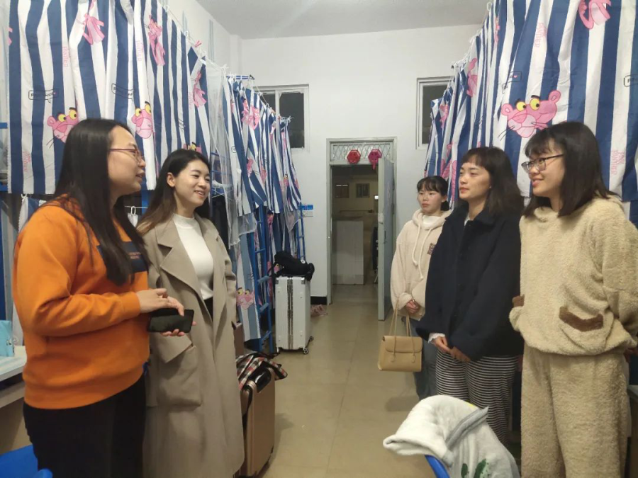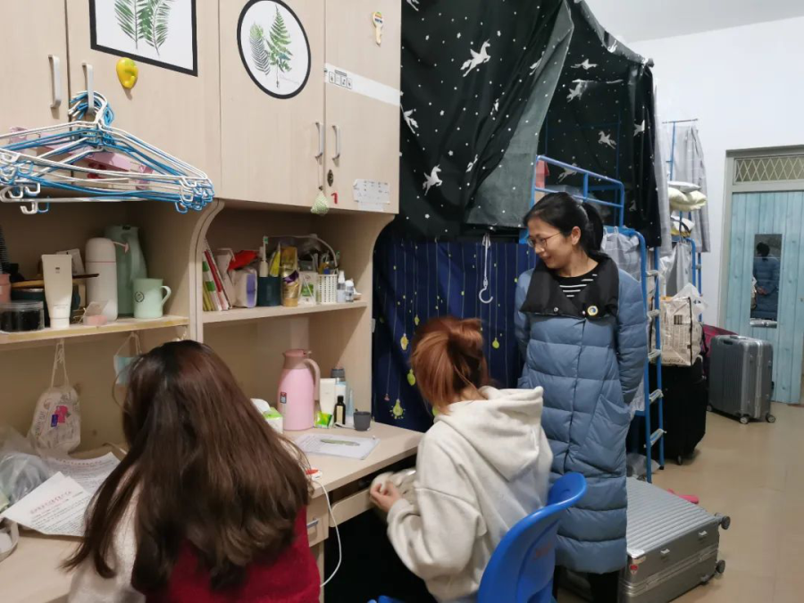 辅导员在寝室里与同学们进行深入交流,拉进与同学间的距离,叮嘱同学们新的学期开始,要调整作息,准时上课,增强体育锻炼等,同时强调一定要注意寝室安全,不用违规电器,要注意保持寝室的整洁,防止细菌滋生,希望同学们多加注意。班主任老师们还特别关心同学们的知识技能掌握情况,亲切地与他们探讨学习中的收获以及遇到的困难。