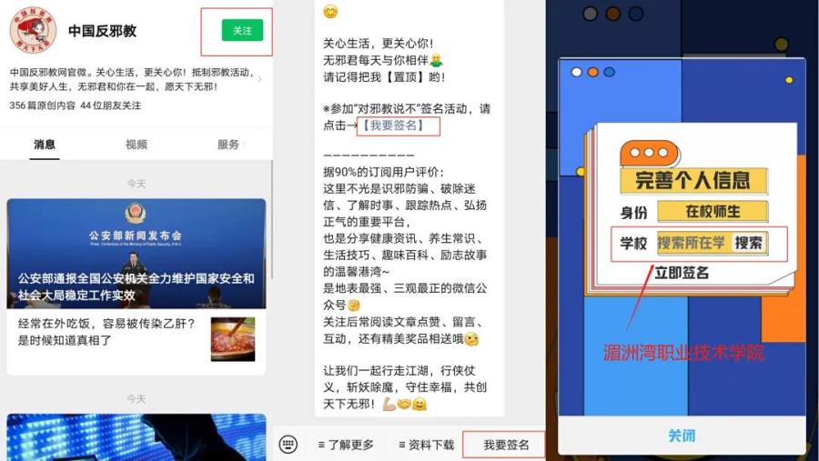 医学院全体同学通过关注“中国反邪教”公众号发布的资讯了解时事、识邪仿骗,以此提高同学们维护国家安全意识和反邪教意识。用科学抵制愚昧,用知识武装头脑,提高思想警惕、增强辨别能力。使同学们以良好的心理素质全身心投入到学习中去。