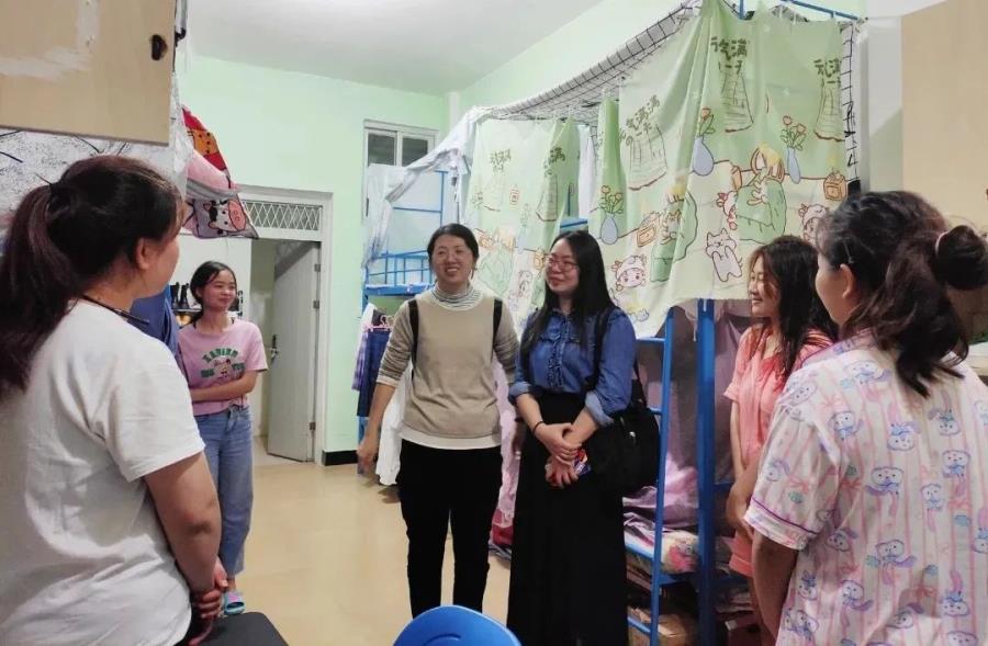 走访宿舍过程中,老师们与同学们亲切交谈,进行了热情问候,对同学们的思想情况、宿舍环境、生活情况、宿舍安全等方面进行了深入细致的了解,同时也提出了关怀和建议,让每一位同学养成规律作息时间,合理安排时间,保持良好心态,认真做好学业规划,在学习上更上一层楼。