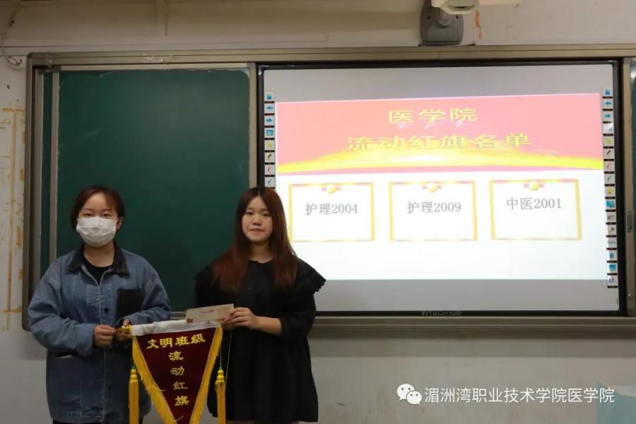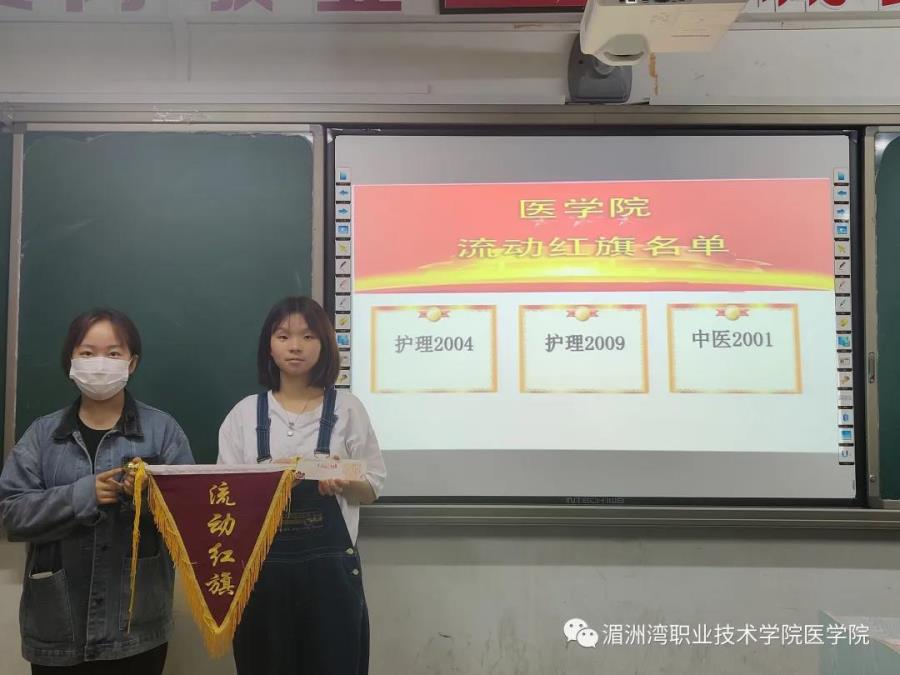 天道酬勤,辛勤的付出总会有所收获。希望护理2004、护理2009、中医2001以上班级继续保持,未获得流动红旗的班级要向他们看齐,加强班风班纪,争取在下次的评选中夺得流动红旗!