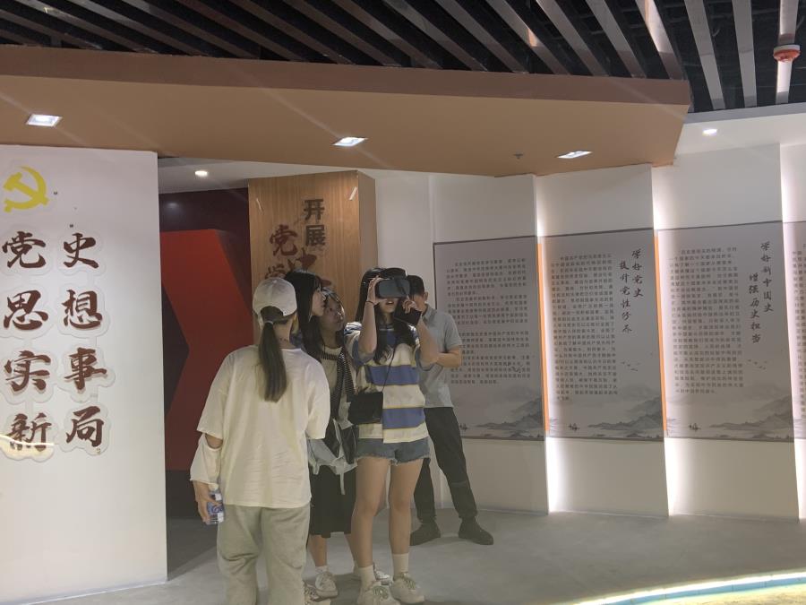 师生一行走进荔城区玉湖新城“党建+”邻里中心VR党史学习教育阵地,重温党的百年历程,铭记党的光辉历史,学习党史上的第一,参观红色留声墙,并身临其境的体验了VR党史学习。党史学习VR系统通过三维可视化陈列方式全面展示历史虚拟展馆的改革历程、党史人物、党内事迹的图文、视频等资料,让历史书本中的图画和文字“活起来”。戴上VR设备后,全体师生犹如“穿越时空”,沉浸式的亲身体验和感悟到党的艰辛历程,可视化、形象化的党史片段,也激励着师生们要不忘来时的路,走好前行的路。师生们在VR红色之旅中再次接受了生动的党史教育。