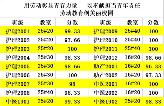 接下来公布第12周教室卫生的评比情况: