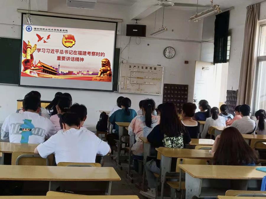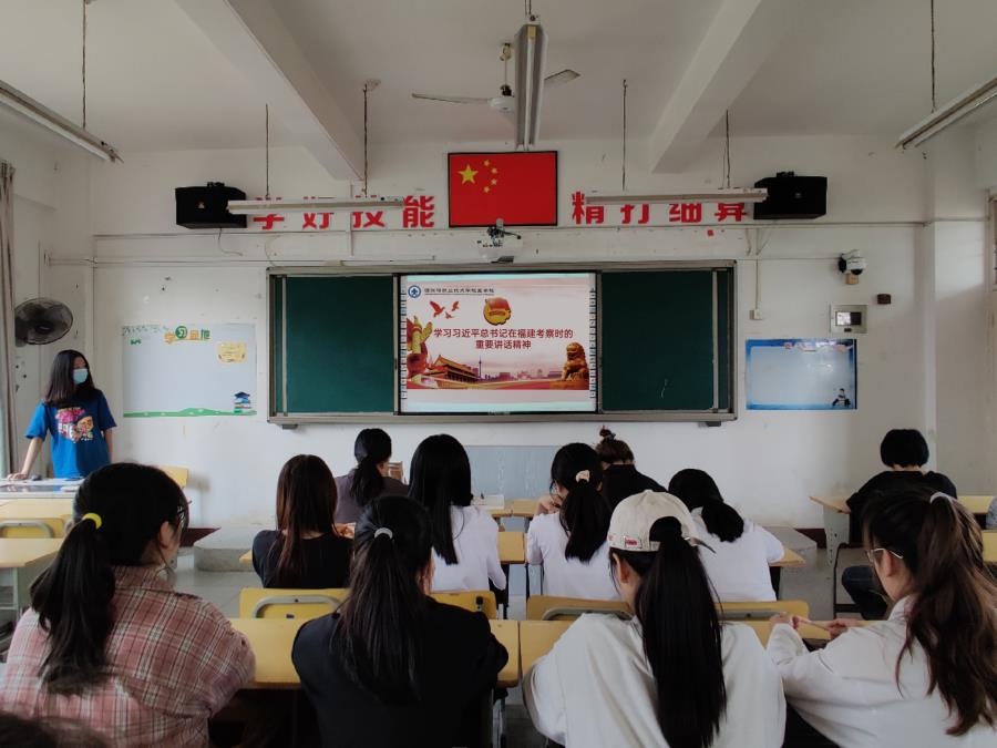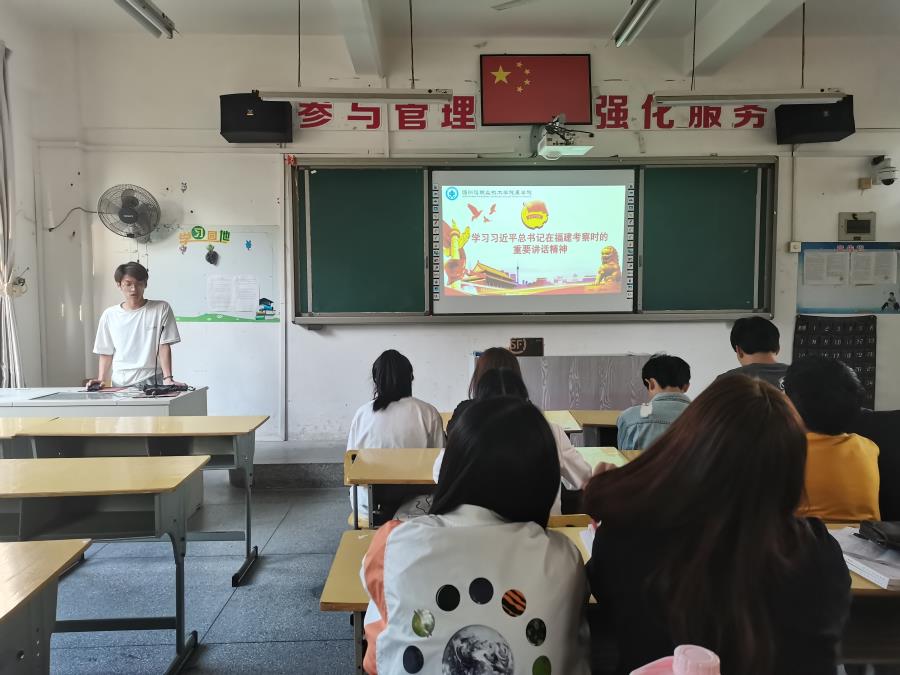 习近平总书记强调,实现第二个百年奋斗目标,实现中华民族伟大复兴,青年一代责任在肩。希望同学们树立远大理想、热爱伟大祖国、担当时代责任、勇于砥砺奋斗、练就过硬本领、锤炼品德修为,努力成为对社会有用的人、道德高尚的人,积极投身全面建设社会主义现代化国家的伟大事业。总书记亲切的话语萦绕耳边久久回响,殷殷的嘱托重如千钧激起壮志。我院各班团支部认真组织学习习近平总书记来闽考察重要讲话精神,从学习中汲取奋进力量,强化使命担当。
