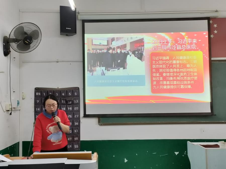 习近平总书记到三明市沙县总医院考察时强调健康是幸福生活最重要的指标,人民至上、生命至上。健康是1,其它的都是后边的0,1没有了什么都没有了。作为医护学生,我将牢记总书记的讲话精神,把总书记的关怀厚爱和殷切嘱托,转化为奋进新征程的实际行动,不怕辛苦、不怕困难,敢于拼搏、勇于担当,积极作为,为推进健康中国建设作出应有贡献。