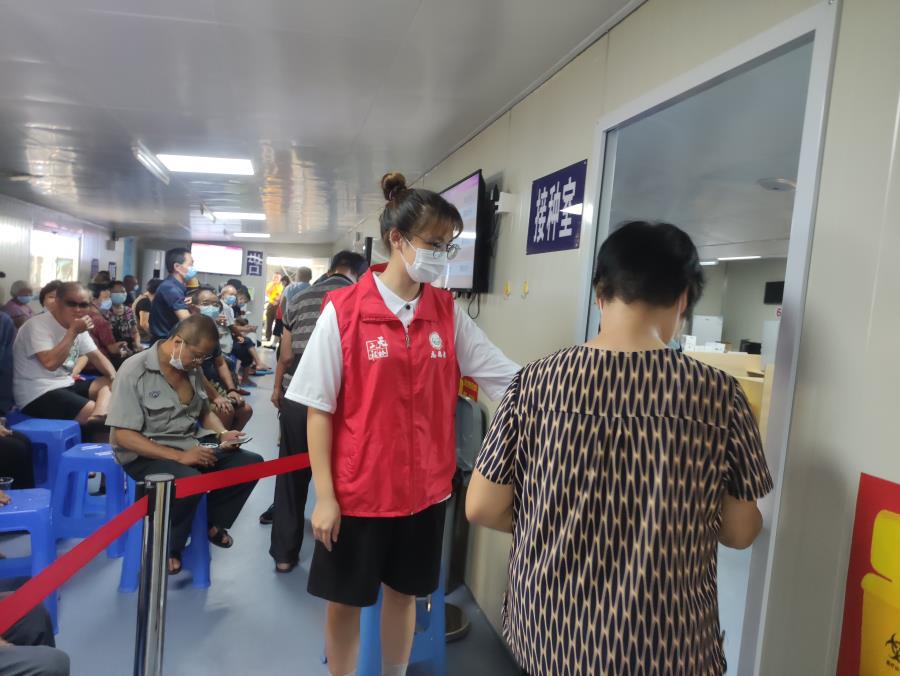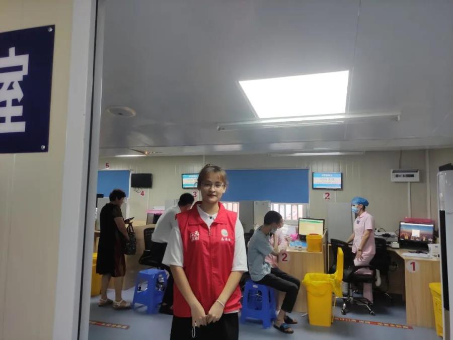 暑假期间,我参加了小溪镇县医院、妇幼保健院及城关卫生院的疫苗接种志愿服务活动。我们早早地到达现场进行布置,如桌椅摆放、饮用水配备、分界线设置等……。当乡亲们过来时,我们首先查看他们的健康码,并为他们测量体温,检查完整、测温正常后才可以进入。有些老年人因年纪过大表达不清或行动不便,我们会耐心地和老人交流,一步一步引导着老人进入医院。工作期间,我精神始终高度集中,细心检查登记,没有漏掉任何一个环节 。