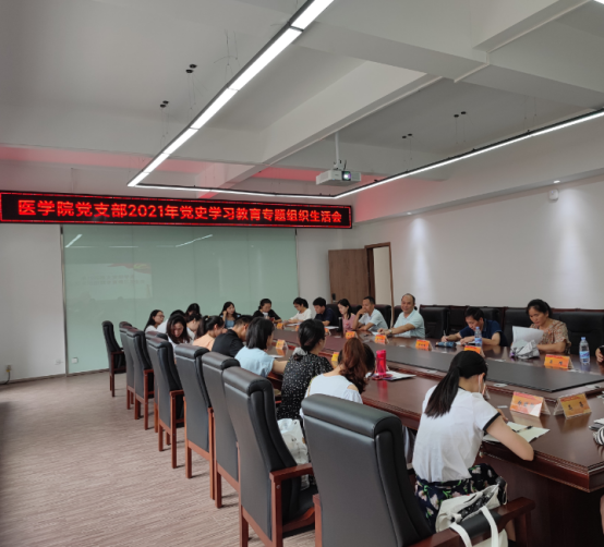 医学院党支部围绕“学党史、悟思想、办实事、开新局”主题,认真贯彻“学史明理、学史增信、学史崇德、学史力行”要求,按照学院党委和党工部的要求部署,结合本单位实际,于2021年8月31日,在行政楼中303召开党史学习教育专题组织生活会。会议由支部书记林俊主持,全体党员参会,党工部陈各辉列席指导。