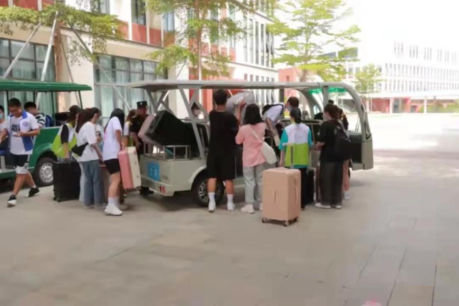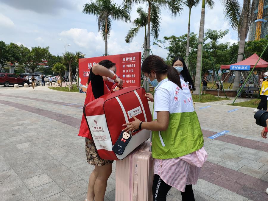 进校后,热情的志愿者们,接过萌新们手中的行李,一对一护送新生到宿舍,志愿者们耐心地为新生们介绍校园环境,讲解注意事项,随处可见“红马甲”、“绿马甲”、“小红帽”忙碌的身影。迎新志愿者负责维持秩序,引领新生有序进入入校通道并帮同学托运行李;“小白车”志愿者负责引领排队,在车下做好乘车指引,协助新生迅速乘车并安置行李,到下车点提醒下车。走在湄园的每一步,都能感受到来自湄园满满的热情。