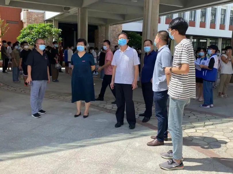 检测现场,秩序井然,学院党委书记林建华、院长许冬红、副院长陈金毓等领导到各核酸检测采样点检查指导工作,看望慰问一线工作人员,要求各环节加强统筹,做好服务保障工作。医学院主任陈凤萍携多位教师检查指导防疫工作,组织开展防控知识普及,完善预案,前往检测现场视察指导工作,并向现场医护人员、工作人员和志愿者表示感谢。