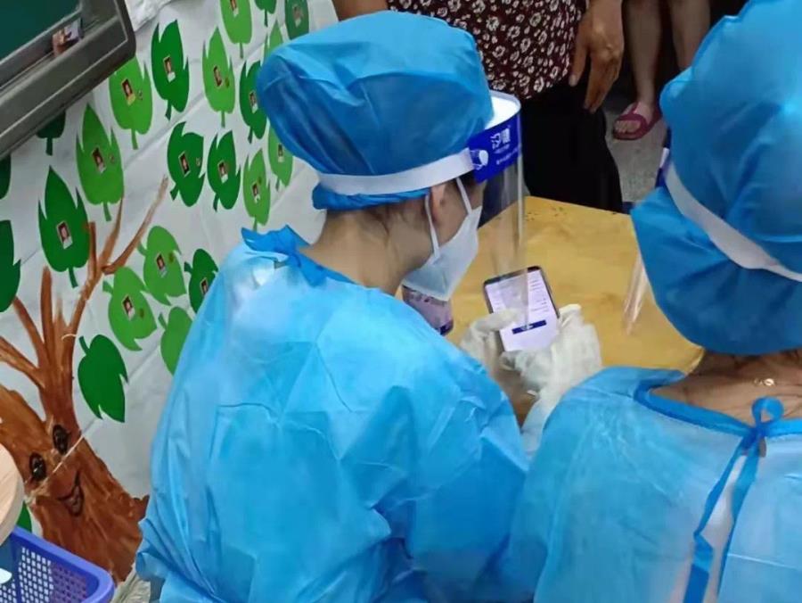 翁雨晴同学在荔城区北高镇栏山村为核酸采样的居民信息录入核酸采样高效有序 志愿初心融入血脉