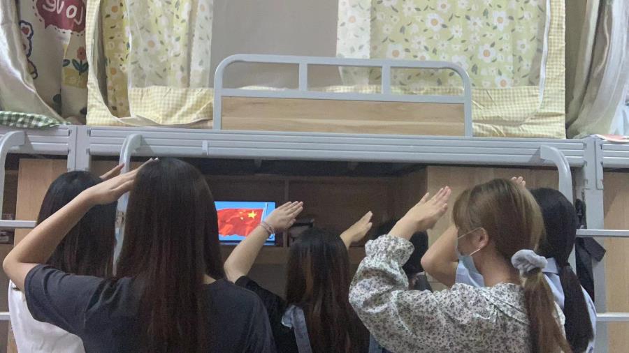 湄洲湾职业技术学院医学院为庆祝中华人民共和国成立72周年,进一步培育和践行社会主义核心价值观,增进广大师生的爱党、爱国情感。国庆期间,老师们组织医学院学子们参与了线上升国旗活动。师生们在宿舍及家里,通过手机和电脑播放升旗视频,向国旗肃穆敬礼,高唱国歌,以满怀炽热的内心表达对祖国的崇敬和热爱。
