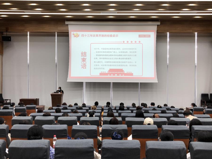 为加强党史学习教育,引导青年大学生从历史中汲取智慧和力量,砥砺信心和勇气,强化担当和作为,近日,医学院在信息楼中103报告厅开展改革开放史主题学习会,会议由医学院分团委负责人朱晴老师主持,全体学生干部出席会议。