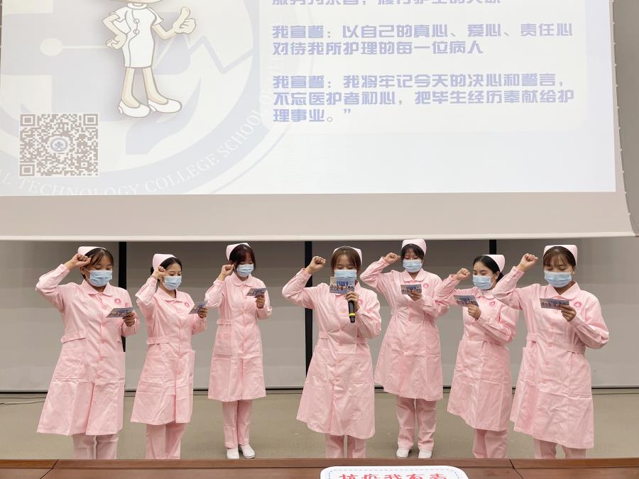 “我宣誓:以救死扶伤、防病治病,实行社会主义的人道主义,全心全意为人民服务为宗旨,履行护士的天职;我宣誓:以自己的真心、爱心、责任心对待我所护理的每一位病人;我宣誓:我将牢记今天的决心和誓言,不忘医护者初心,把毕生经历奉献给护理事业。” 震撼心灵的誓词在报告厅内久久回荡,诠释了每一个医护生对护理事业的忠诚与责任。