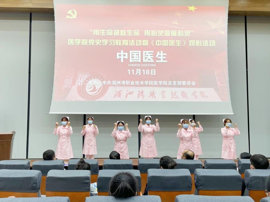 为加强师生党员、入党积极分子理想信念教育和爱国主义教育,医学院围绕党史学习教育工作安排,2021年11月18日组织师生党员和入党积极分子在信息楼103,开展“用生命拯救生命,用心灵温暖心灵”为主题党史学习教育活动暨《中国医生》观影活动。共同学习中国共产党人的精神谱系——伟大抗疫精神,发扬医护者厚学笃行、仁心善美品质。