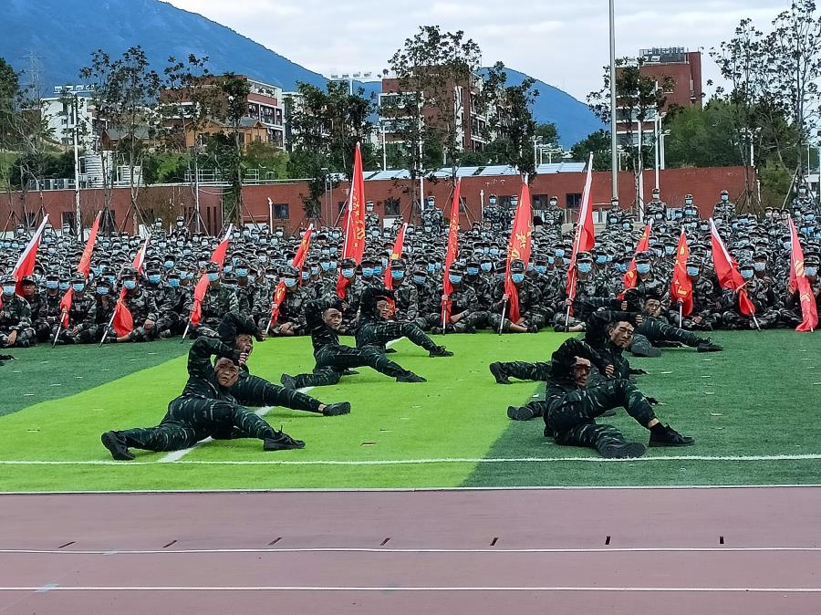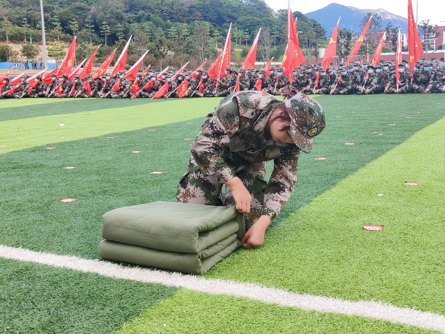 随后分别上演了教官的军体拳表演和学生内务规范展示,深深震撼了在场的每一个人。