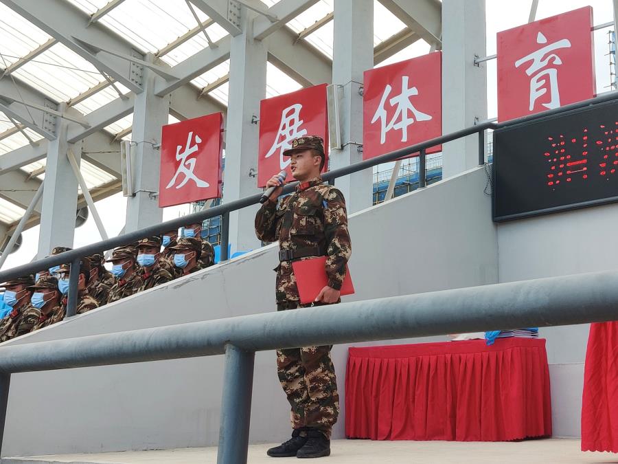 大会中,武警莆田支队教官发表热情洋溢的讲话,他指出大学生军训既是党和国家的战略决策,是增强国防意识和培养人才的最好途径之一,又是同学们艰苦奋斗、磨砺意志、增强体质的机会。
