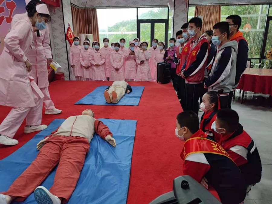 (医学院护理专业同学向中小学生传授心肺复苏急救知识和相关实操技能)