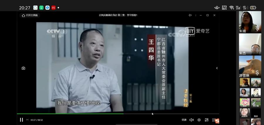 最后,全体党员、入党积极分子共同观看了中国共产党人的精神谱系(伟大建党精神、科学家精神、抗疫精神、脱贫攻坚精神)、《榜样6》电视专题片、警示教育电视专题片《正风反腐就在身边》,并专题学习交流《中国共产党章程》(第七章 党的纪律),同志们深受启发,感触很多,纷纷发表感想。