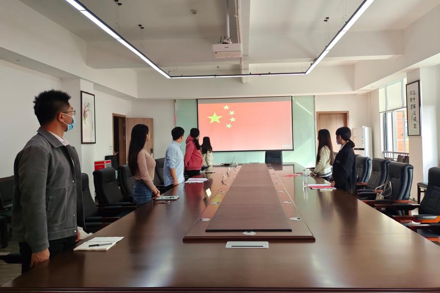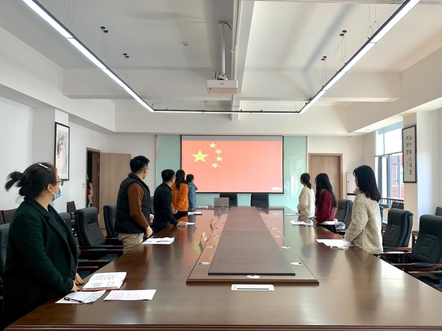 议程一:全体起立,奏唱国歌