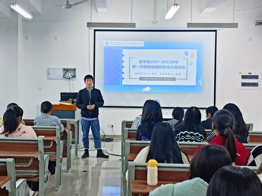 寒假将至,为提高同学们的安全防范意识,让同学们掌握基本安全常识和疫情防控技能,同时,确保同学们度过一个平安、快乐、健康的假期,医学院2021级辅导员于1月3日-5日期间在医学院教室召开了寒假离校安全教育主题班会。