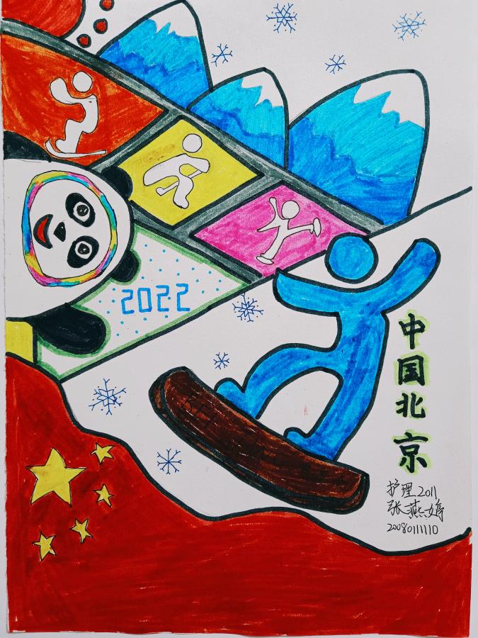 第24届冬季奥林匹克运动会于2月4日在中国北京举行,为进一步弘扬奥运精神,传承优秀文化,营造浓郁的迎冬奥氛围,医学院组织开展为冬奥加油助威的主题绘画作品征集活动。同学们将用缤纷的色彩、交错的线条勾勒出对冰雪世界的向往和对冬奥会精彩项目的想象,营造深厚的冬奥冰雪氛围,为北京冬奥加油助威。接下来让我们一起来欣赏同学们的精彩作品吧!