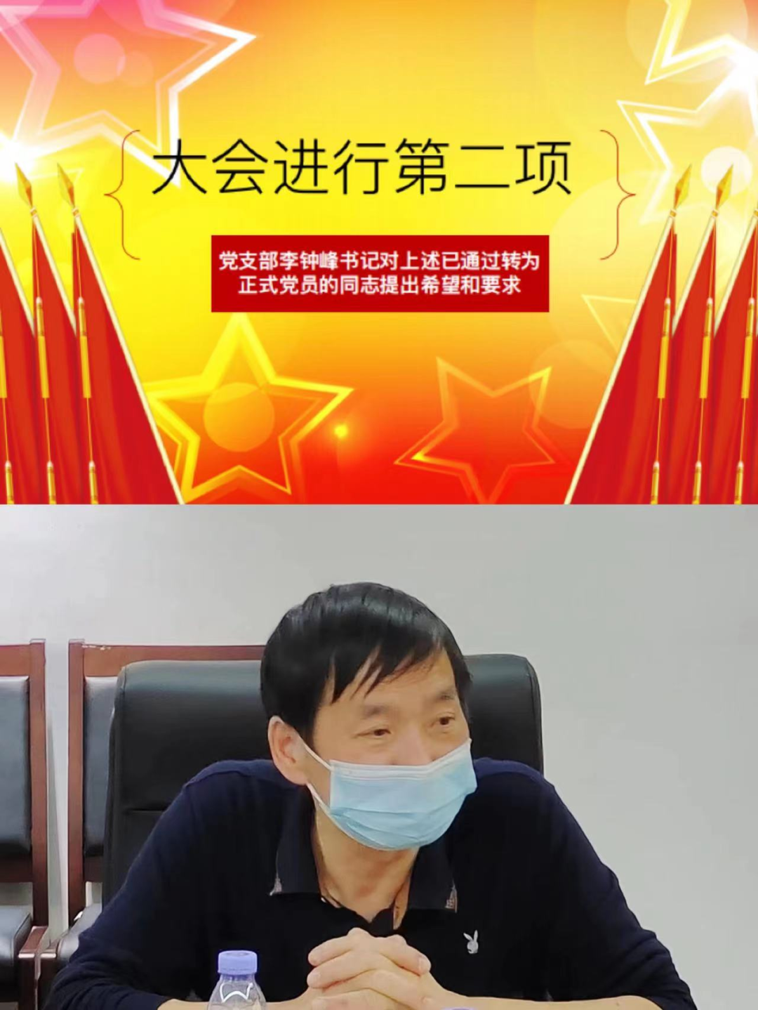 党支部李钟峰书记对转正的梁欣同志提出三点要求和希望:一要不断增强入党的光荣感和责任感,坚定对党的理想信念,永葆正确的政治方向。二要始终以党员的标准规范严格要求自己,不但在组织上入党,还要在思想上入党,做一名真正的共产党员。三要充分发挥党员的先锋模范作用,要有吃苦在前、享乐在后的精神,关键时刻要能挺身而出,危急时刻要有牺牲自己的勇气。
