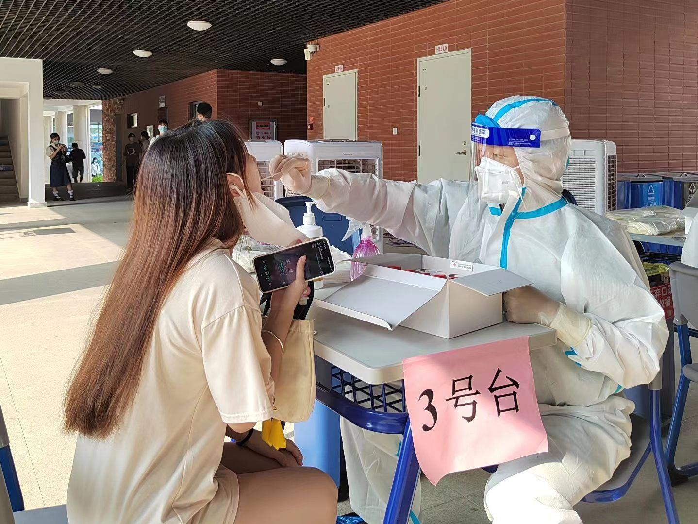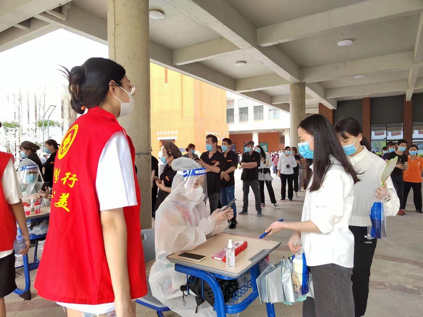 医务人员严格按照检测规范流程进行核酸采样,并做好消毒工作。整个过程井然有序、科学规范、严谨细致、快速高效,得到了师生们的充分赞许。经过医务人员、全体师生党员、志愿者共同努力下,顺利完成本次核酸检测工作。