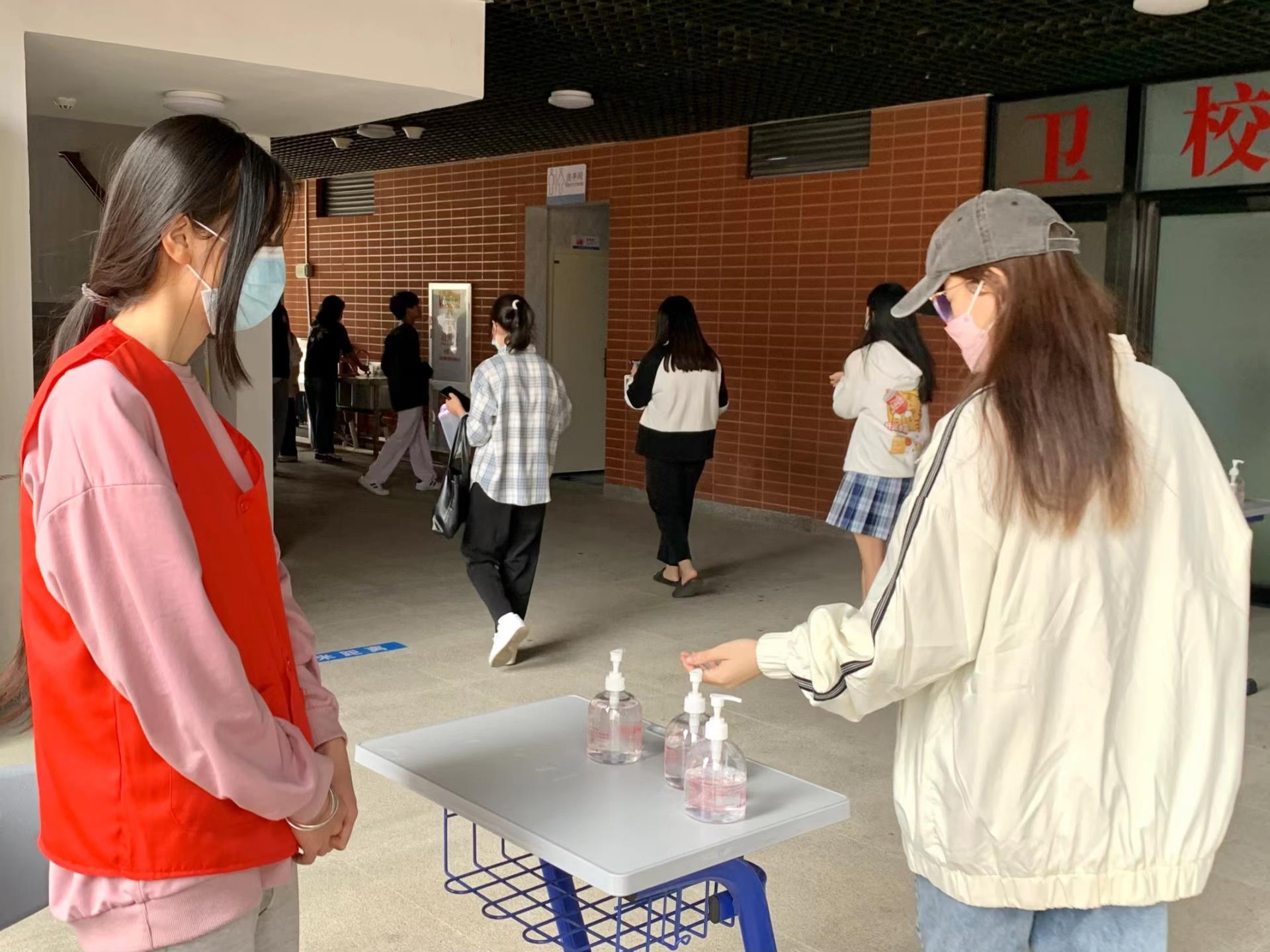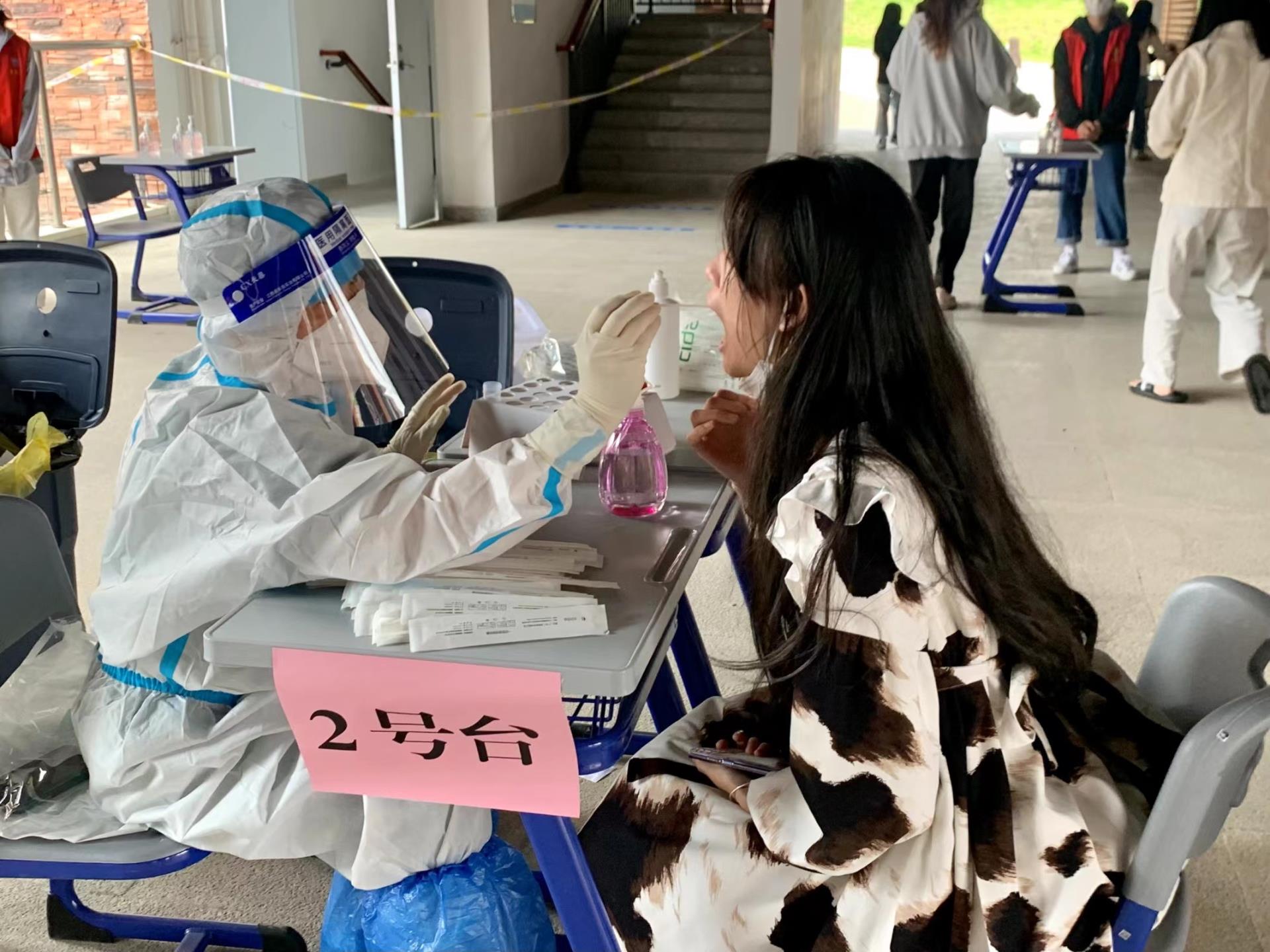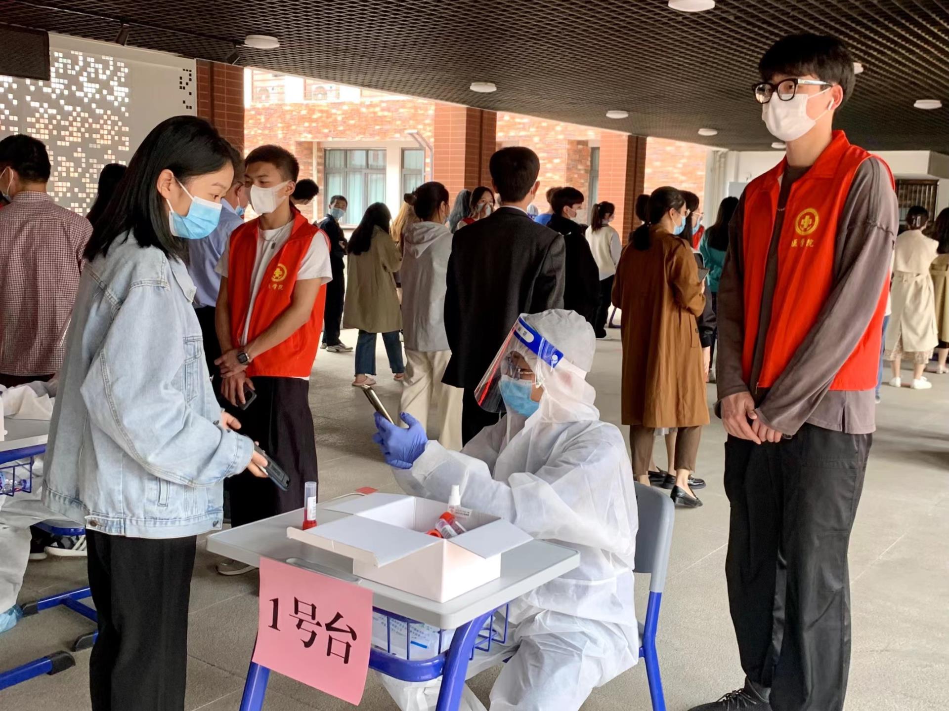 在师生党员、志愿者的积极引导下,全体教职工以及同学们提前扫码登记并做好个人防护,保持距离有序排队,确保信息采集、核酸采样等各项工作有效开展。