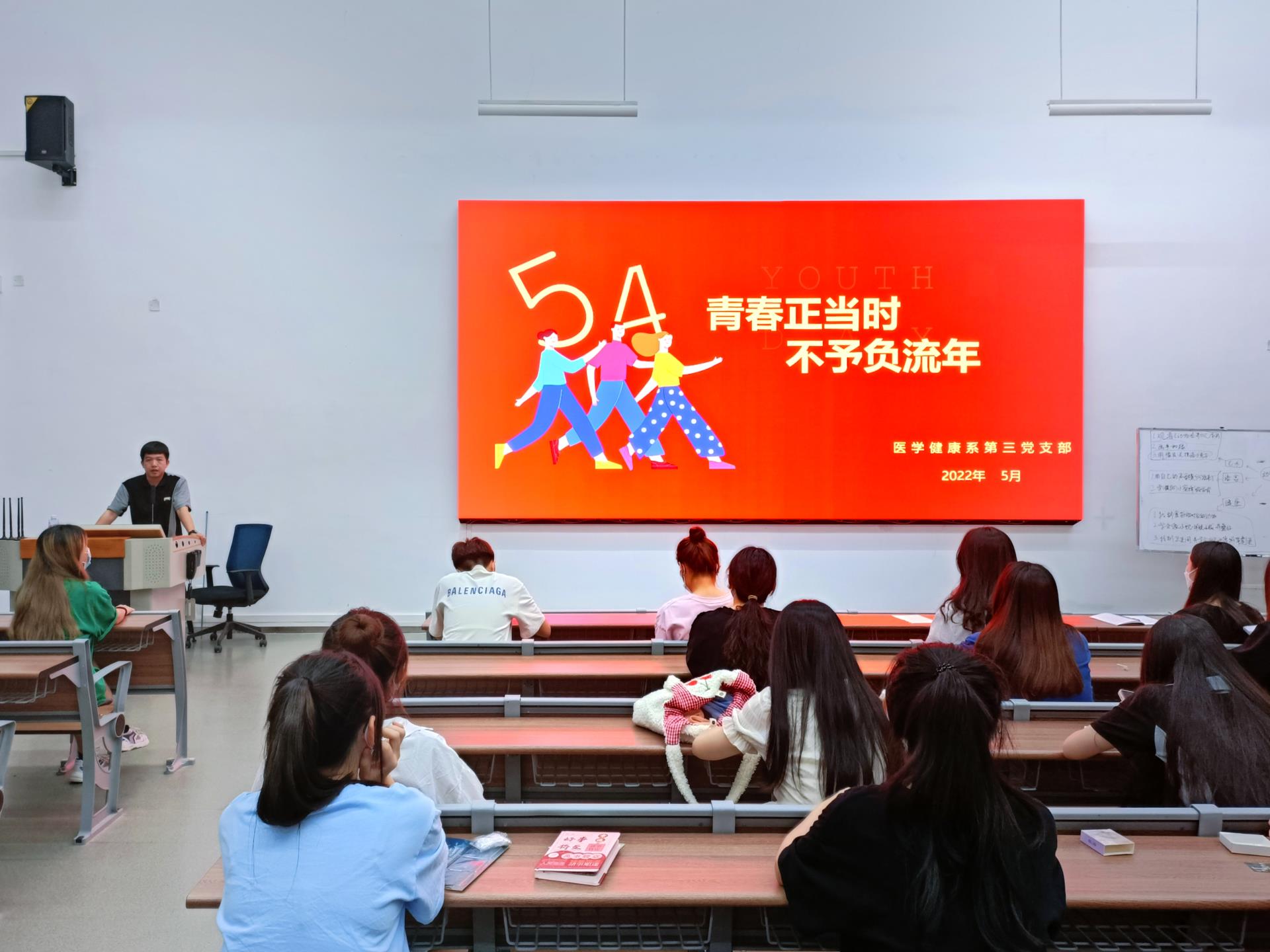 100年栉风沐雨,共青团始终坚定不移跟党走,团结带领共青团员和广大青年前赴后继、勇当先锋,是党和人民事业的主力军。为深入学习贯彻习近平总书记系列重要讲话和指示精神,教育引导广大青年继承和弘扬五四精神,迎接党的二十大胜利召开。5月5日,医学健康系第三党支部书记陈佳勇老师在信息楼中102开展了主题为《青春正当时 不予负流年》的专题党课。