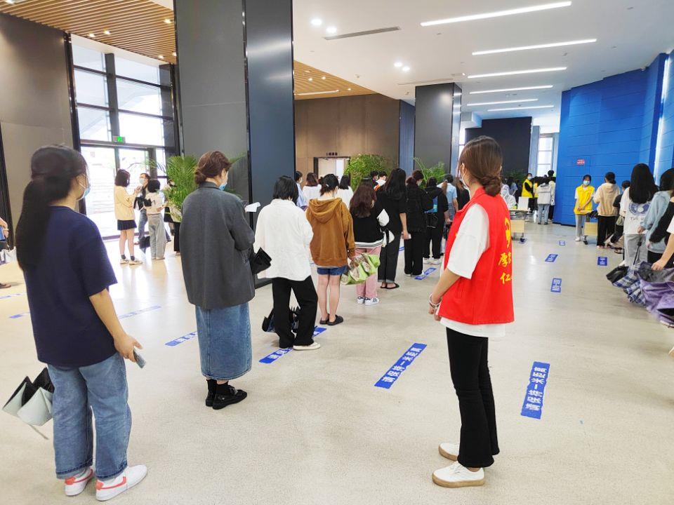 核酸采集现场,秩序井然,医学健康系多名教师及现场志愿者协助医护人员对检测的师生进行引导,“10人一组,排好队,保持一米间隔”认真维持好现场秩序,保证采样工作顺利进行。志愿者们忙碌的身影,充分展现出当代大学生良好的精神风貌和担当。检测现场全体学生佩戴口罩,按照一米线距离,有序排队进行核酸检测。医护人员操作熟练,迅速,整个过程有条不紊。