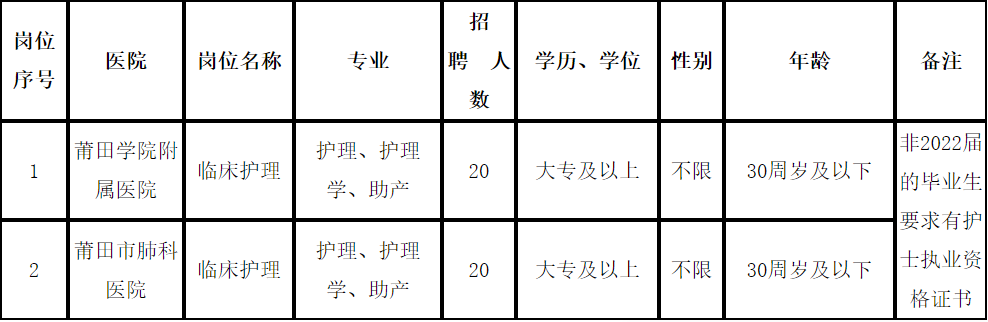因工作需要,莆田学院附属医院医疗集团对外公开招聘 40 名编外专技合同工,根据中共莆田市委办公室和市人民政府办公室《关于印发莆田市事业单位公开招聘工作人员规则的通知》(莆委办[2011]68号)和莆田市卫计委《关于做好市级卫生和计生单位招聘工作的通知(试行)》(莆卫人[2015]138号)文件精神,遵循公开、平等、竞争、择优的原则,发布本招聘公告。