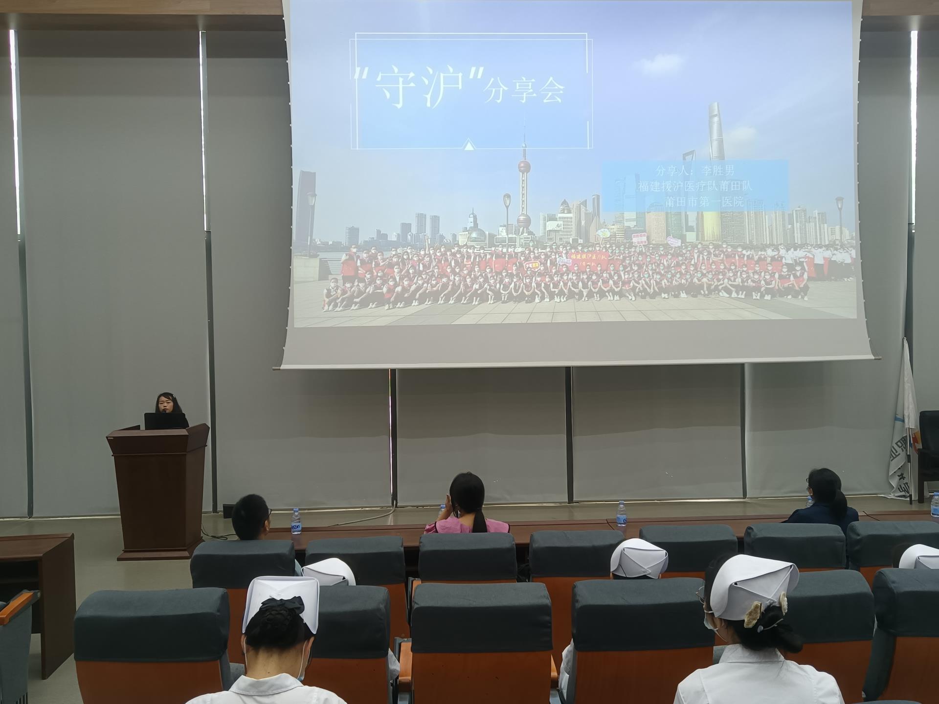 本次讲座分别邀请了援沪医疗队、莆田市第一医院李胜男主管护师、福建妇产医院叶冬梅学姐以及莆田涵江医院郑漂漂学姐,为在校毕业生分享援沪、在莆抗疫过程的点滴经历及收获的感动与心得。讲座由朱杰老师主持,近200名2022届毕业生同学参加。