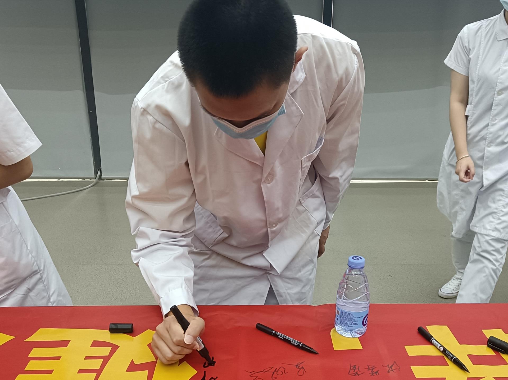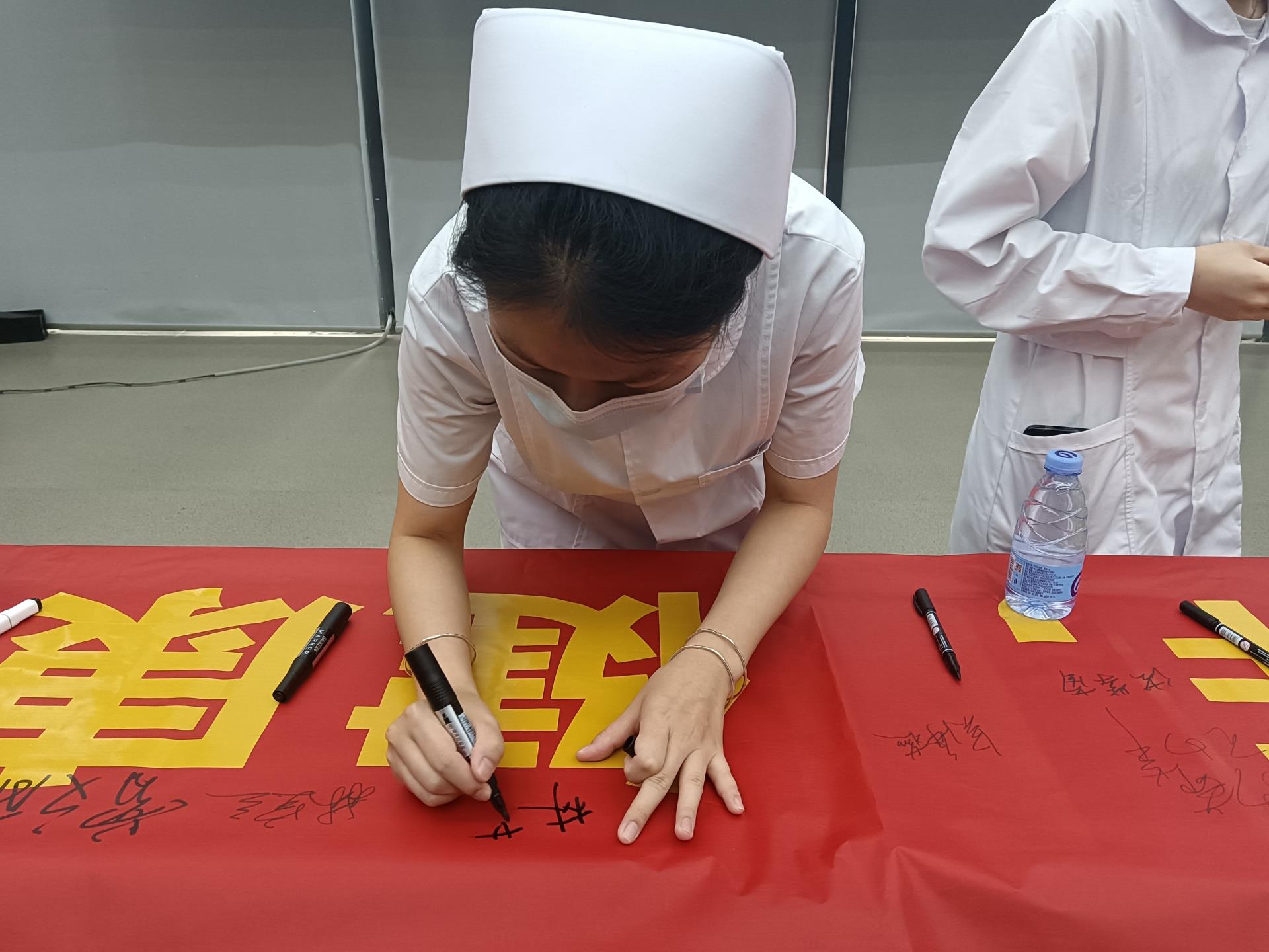 系列讲座接近尾声,在李胜男老师的带领下,同学们纷纷起身,右手握拳宣誓。“我宣誓,以救死扶伤、防病治病,实行社会主义的人道主义,全心全意为人民服务为宗旨,履行护士的天职.....”护士宣誓环节铮铮誓言响彻报告厅,更是将现场气氛推向了高潮。随即全体毕业生同学在横幅上郑重签下自己的名字,既是表达对中国共产党勠力同心、锐意进取的抗疫精神的自豪,也是对医护神圣职业的神圣笃行与坚守。