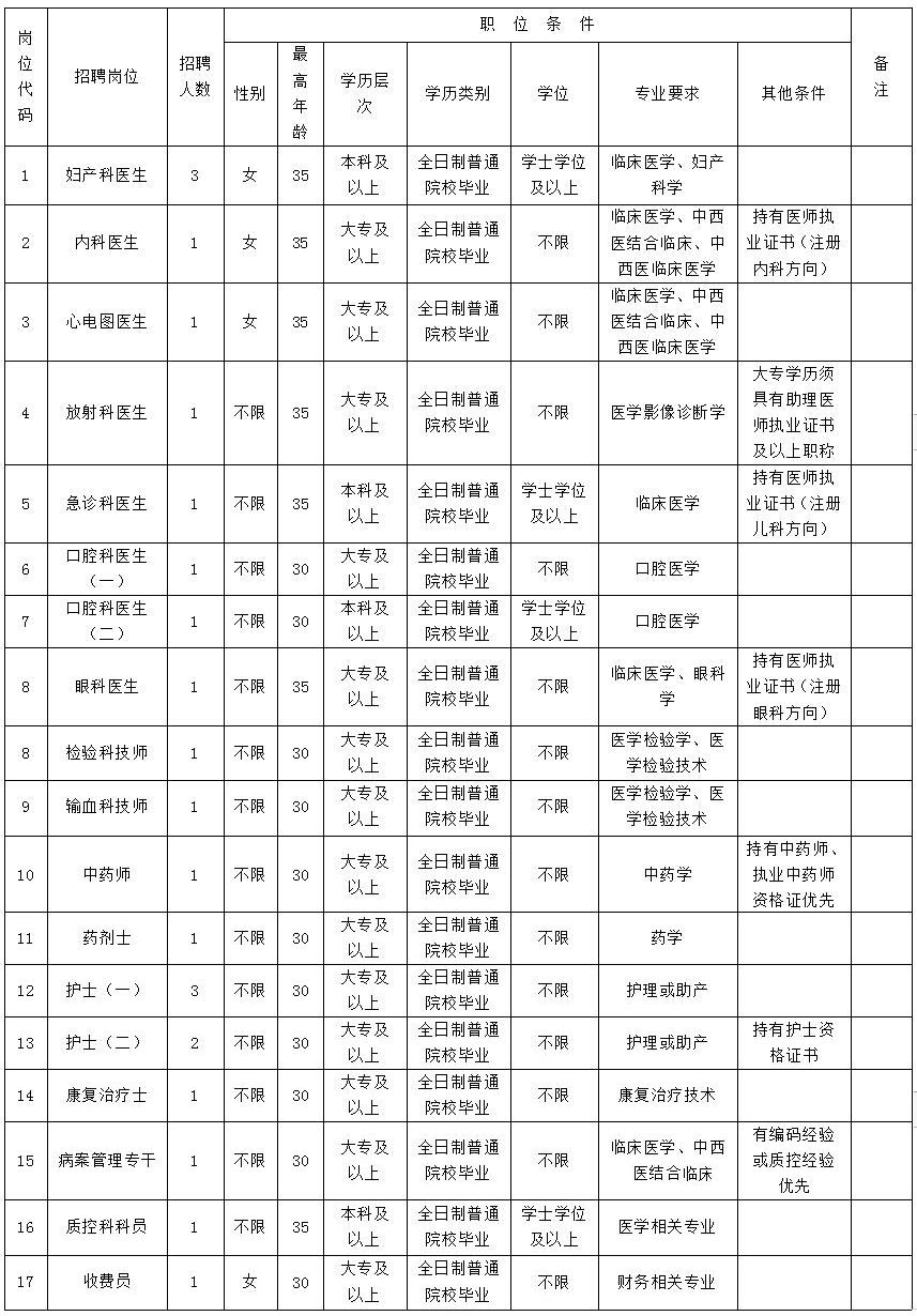 为满足医院业务开展的需要,拟向社会公开招聘各类编外人员23名。实行合同制聘用,具体方案如下:
