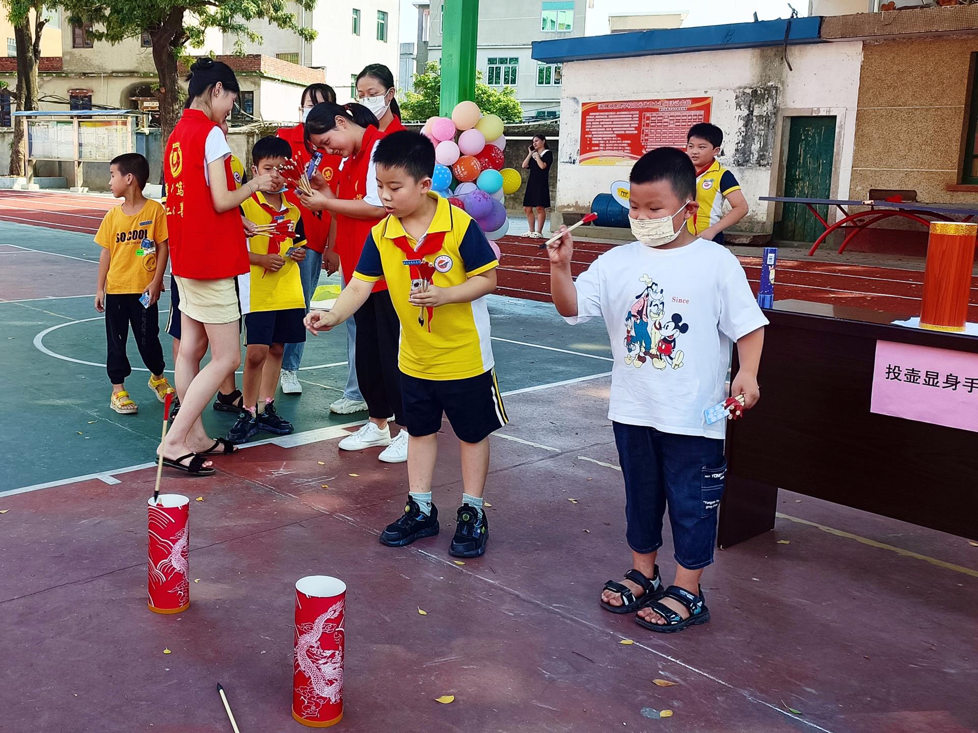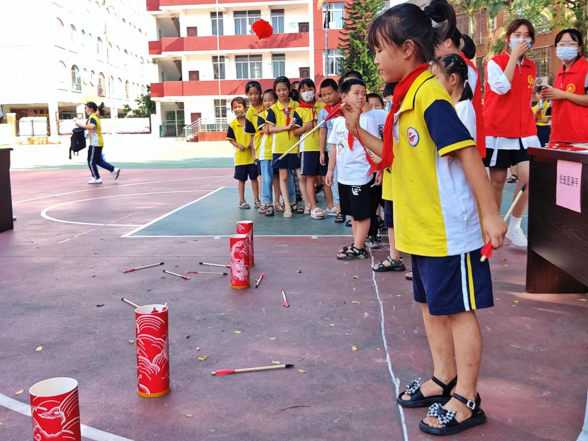 投壶是从先秦延续至清末的中国传统礼仪和宴饮游戏,投壶礼来源于射礼。看,孩子们一个个聚精会神,目光炯炯,各个争先恐后,都期待着自己投准投中!小朋友们时而欢呼、时而懊恼,好不热闹。加油声、呐喊声、欢笑声此起彼伏,在游戏的欢乐中,中华传统正在被他们默默传承。