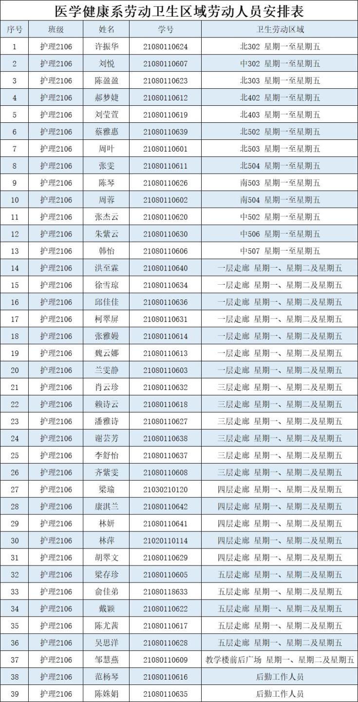 接下来公示的是医学健康系第6周公共卫生区域劳动人员安排,请查收~