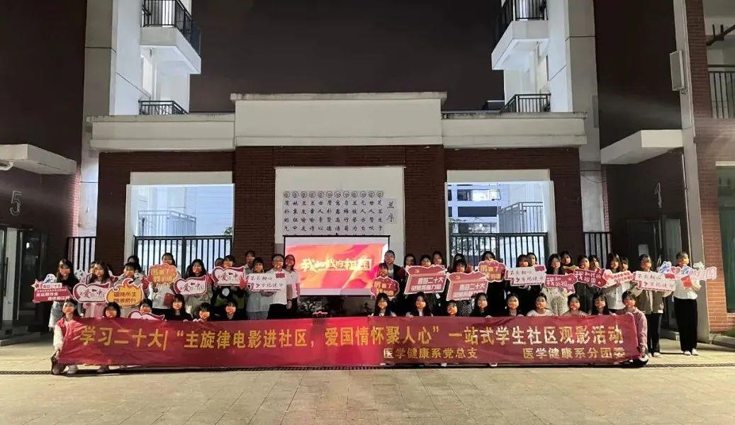 “为深入学习和领悟党的二十大会议精神,以“一站式”学生社区建设试点工作为契机,坚持党建进社区、“党建带团建”的探索与实践,聚焦爱国主义教育,同时也丰富同学们的校园生活。10月16日晚,医学健康系开展“主旋律电影进社区,爱国情怀聚人心”--医学健康系一站式学生社区观影+主题教育周活动”。