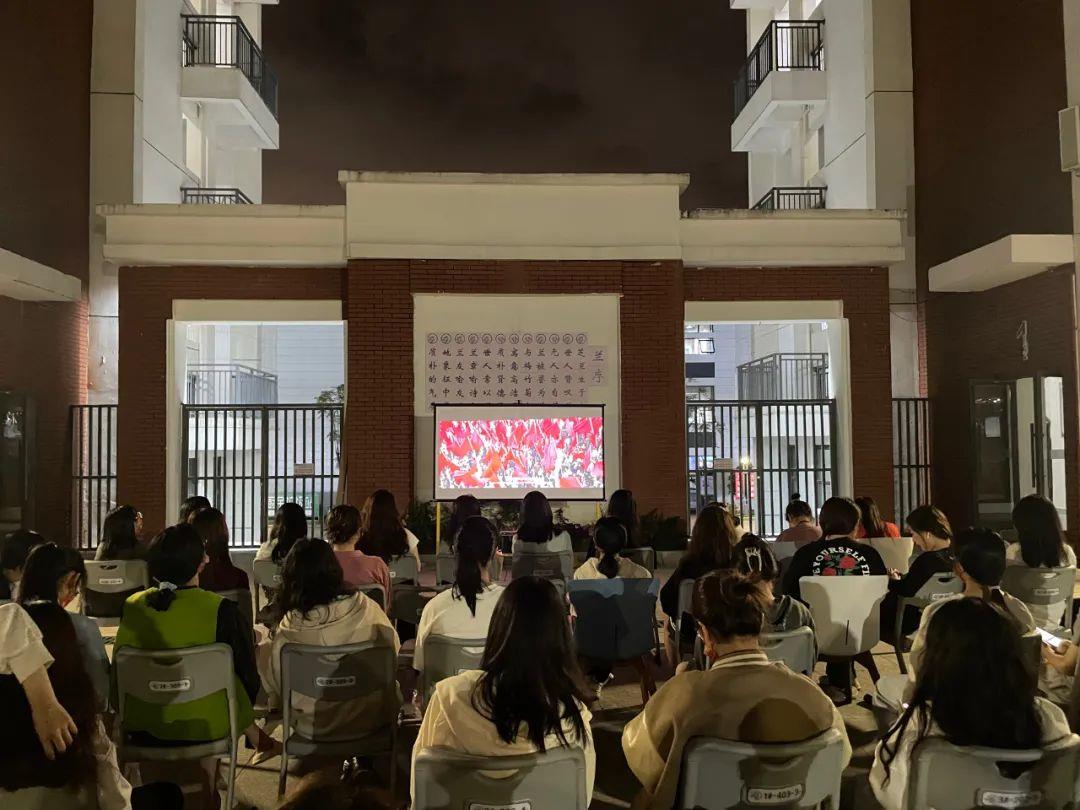 在兰苑,学生社区露天电影场面火热,社区近百名师生或坐或站,聚精会神关注前方银幕里放映的是影片《我和我的祖国》。《我和我的祖国》从不同的视角,讲述了新中国成立以来的7个重大历史瞬间,聚焦大时代大事件下小人物和国家之间看似遥远实则密切的关联,展现了一段又一段燃情岁月,观影过程中,全场师生全情投入,电影片段让人热泪盈眶。