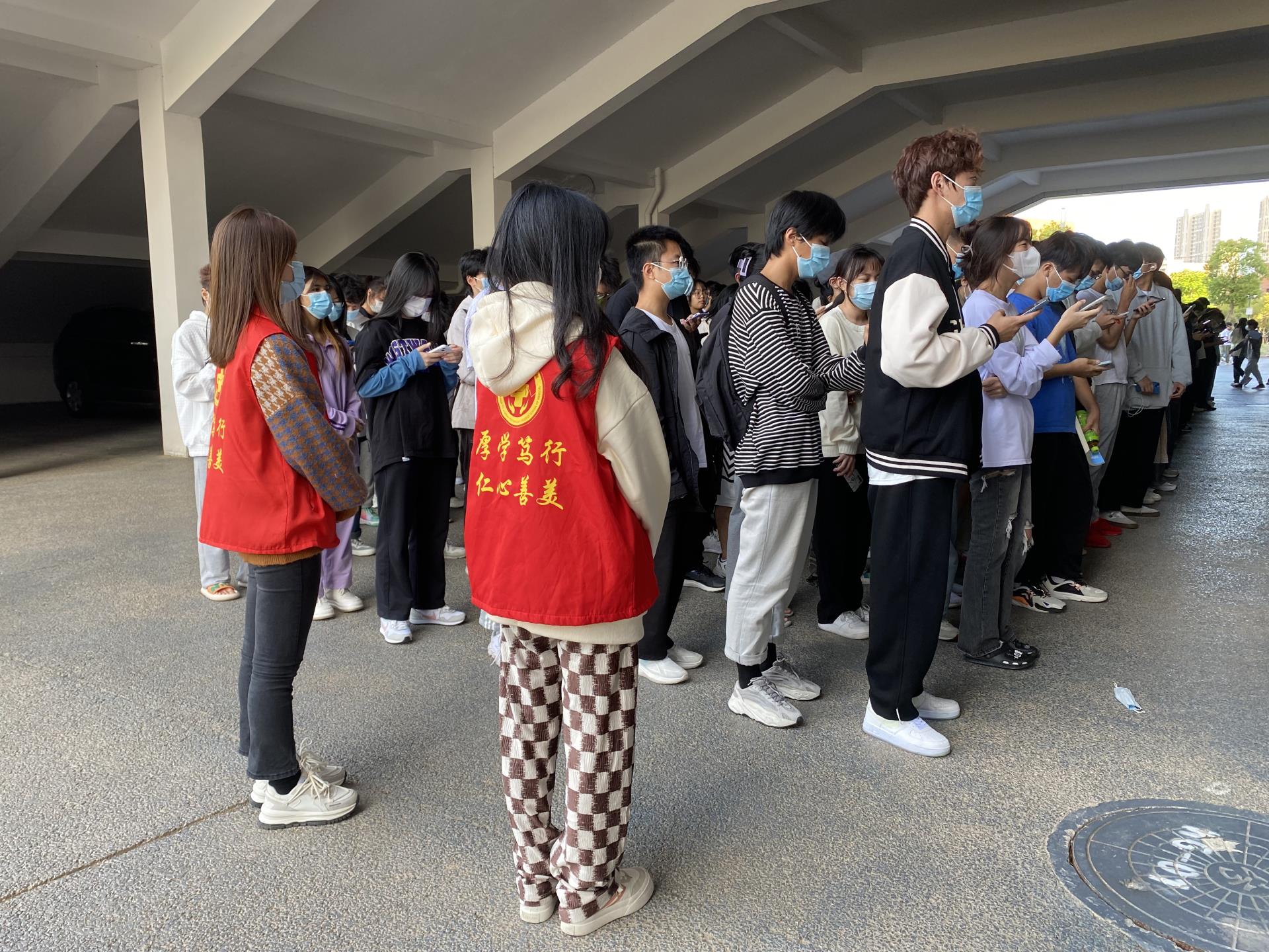 医学健康系领导积极号召志愿者参与本次核酸检测工作,协助医护人员顺利完成本次任务。进行核酸检测人员均佩戴口罩,有序排队,经相关工作人员核对并登记信息。秩序井然的核酸现场,参加核酸采集的师生严格遵守防护要求,规范佩戴口罩,保持一米距离,听从安排,在医护人员的指导下完成核酸采集。为广大师生安全有序检测筑起守护之墙,彰显了医学健康系青年学生骨干的责任和担当。