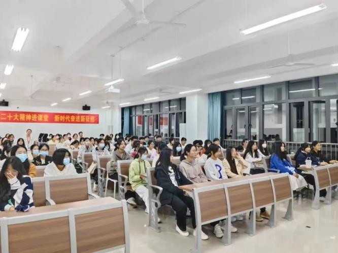 为学习宣传贯彻党的二十大精神,正确引领青年学生踔厉奋发,勇毅前行,努力争做新时代优秀大学生,为中华民族伟大复兴而不断努力。11月7日,医学健康系第二党支部书记朱杰老师在医学楼北503为同学们讲授主题为“党的二十大精神进课堂,新时代奋进新征程”的专题党课。