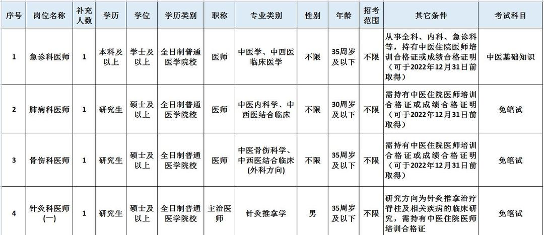 根据《龙岩市中医院招聘编外人员公告(2022下半年)》《龙岩市中医院关于更改招聘岗位条件并延长报名时间的通知(2022年下半年)》,现因疫情原因仍有部分岗位报名人数未达相应比例,经研究,同意部分岗位更改招聘岗位条件、增加岗位并延长报名时间。